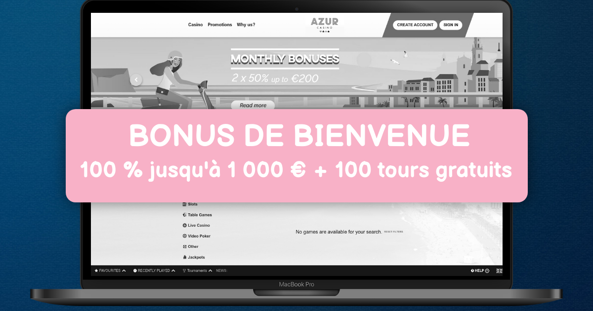 Azur Casino propose un bonus de bienvenue de 100% jusqu'à 500€ sur le premier dépôt, doublant efficacement votre capital initial. Des tours gratuits peuvent également être inclus selon les promotions en cours.